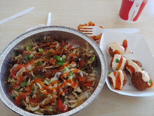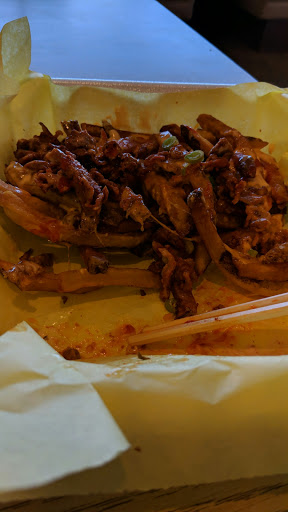 A co worker introduced some of us to this food/location, and told us to go try it. Upon driving up to the location the outside made me a little nervous. However, once I went in, it was clean, simple, sharp, and easy to read menu with just enough selection. Service was GREAT including payment of the order, and quickness of food delivery for our to go orders. Condiments easy to grab and on hand. I had the K Pop Fries with beef, and HOLY COW it was good. Going back today for more!