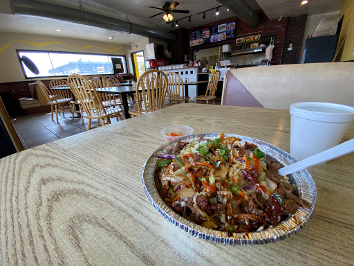 I didnt really know what to expect when my friend brought me to this place for lunch but was pleasantly surprised how good it was. I like Korean food but I just cant handle spicy. I ordered the bul-gogi-gogi and i do recommend it. It had a little spice to it but not enough to have me start my hickup/sweating reaction. My friend had the K-pop fries, which are simply fires with spicy mayo, siracha, bbq pork and bul-gogi meat all on top. Both were really good and very filling. The K-pop fries is actually pretty filling all on its own. I totally recommend this place to anyone who wants a quick korean fix. It is easy to miss if you dont know what to look for. Its a bright yellow building!!!