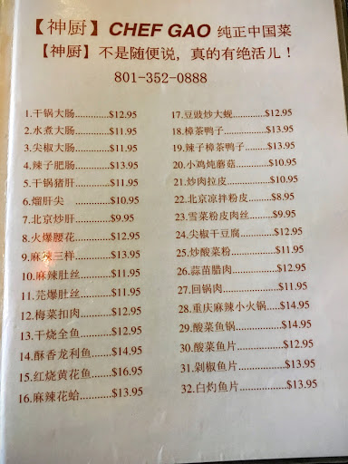 I am hugely enthusiastic about Chinese food, and very particular about authenticity. Having spent years in China and Taiwan, I do not go for Americanized Chinese food. Chef Gao aka Sweet Ginger nails it. This is the real deal. Very authentic. Everything I ate there tasted great. Furthermore, those who miss the ambiance of old-style restaurants in China will be please by the polished cement floor and the paper art on the walls. This, along with Moms Kitchen, are my hands-down favorites for Chinese cuisine in the Salt Lake City area. (and yes, I have been to the Mandarin in Bountiful, which is good but not nearly as authentic) I have not seen it crowded, and service has always been prompt and professional. I hear the restaurant is for sale, which worries me a bit. Better get there fast for another great meal, just in case quality collapses with the sale.