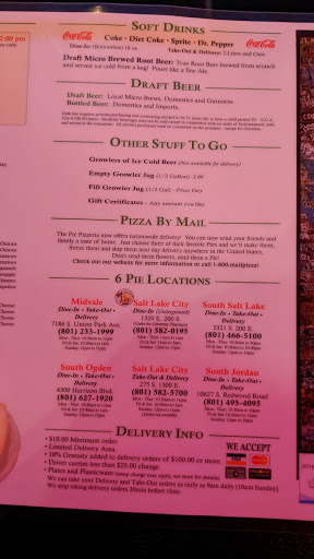 The pie has always had good pizza at any location. The Midvale location is no different, they just happen to come up short on the customer service side of things. Worst of all is their delivery radius. The farthest north I was told they delivered was 4700 south and 400 west. Couple of issues come to mind. #1 4700 south turns into 4500 south about that far and when I told the stoner I talked to on the phone about this he acted like I was the stupid one. #2 4500 south and 400 west doesnt even have any houses or anything to deliver to. Unless youre ordering a pizza from the Conoco, Texaco, chevron, Wendys or Lowes. I live off 4500 South and not even quite 700 west and I was told this was too far. I am literally 1 short traffic light away from 400 west. So theyll deliver to several gas stations, a fast food place, and a home improvement store, but will not deliver to the first set of houses and apartments 1 traffic light away. Completely ludicrous. Because of this I will never eat at the Midvale location ever again. Fix your delivery policy to include homes and apartments instead of businesses and maybe well talk. Sincerely, Bitterly not delivered to.