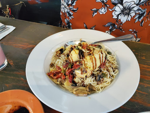 This is a tough restaurant to review. Some of the food was pretty good, some of the food was not good at all. The wait was only a few minutes for a busy night. The decor is nice and the atmosphere is ok, but it was a mixed crowd of loud high school kids (school dance I assume) mixed with casual dress and more formal dress. Our waitress was helpful and friendly so at least the service gets a favorable review. The food is most important so let me review our dishes. We started with the Roasted Garlic, Spinach & Artichoke Dip which was pretty good but we would have preferred chips or soft bread instead of the crunchy flatbread. Then we had the chefs special for the night which was almond-crusted swordfish with a side of asparagus. The fish was very tasty but I picked off most of the dried almonds on top because they didnt enhance the flavor. The asparagus looked ok until I removed the decorative stack of crunchy fries (or onions... I dont remember what they were). The asparagus was charred to the point of black/brown and inedible. It literally tasted like charcoal. I asked our waitress to bring me some new asparagus which came out when I was nearly done with my meal. The new asparagus was less charred but half of them were still burnt to the point of flaking on my plate. We also had the grilled salmon which I would rate as an average salmon plate. It wasnt dry like some places but it wasnt all that flavorful either. The bottom was charred and the asparagus came from the same burned batch as the other plate. It seems the chef thinks that a BBQ-style, charred taste is a flavor people want at a semi-fancy restaurant. I can do that on my home grill so I think Ill pass on this restaurant next time.