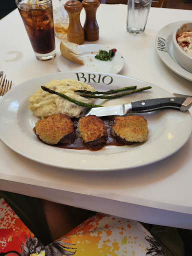 We went here for our 5th year anniversary. Which we normally go to Tuccis for fine authentic italian food, but figured wed spend a few more dollars for some "high end italian cuisine", what a terrible mistake it was. We dressed up in a high end dress with heels and a suit n tie for the occasion. Our server forgot to bring us our bread right off the bat so 17 minutes go by and all we had was water, we ordered nice fancy alcoholic drinks n they came within 20 minutes, we finally got the bread after 23 minutes which she forgot to bring us plates, so we had to hold our pieces of bread while we buttered them, we sat outside(the waitress said they dont normally have plates outside already sitting on the table and appologized once we asked to get some plates so we could actually eat our food). We placed our order after 10 minutes of sitting, so we got our water, ordered drinks and an appetizer, drinks came at 20 mins, our bruschetta bread (tasted like pizza, had balsamic, red pepper, and mozarella) came at 25 mins. Our lobster bisque came at 30 mins (which tasted way fishy, idk if it has fish stock soup or what?, Ive never had fishy lobster bisque in my life, I joked with my wife saying it was imitation lobster and she said they would be in trouble serving imitation for $6.99 a bowl, lol), the bisque cream was good once you get over the fishy taste. Onto the lobster n shrimp pasta which was served to us 45 minutes after waiting for our main entree, the lobster pieces were actually amazing, but very little on your plate, the shrimp was plain and needed seasoning, the fettuccine was good and lack of sauce didnt complement it at all making it dry. This was our 3rd time going to Brio, we normally go to the City Creek location, but wanted to try out the Fashion Place Mall location which after a $90 bill with a $20 tip making it a complete joke for $110 meal. Do not waste your time, memories, and money at this joke of a wanna be high end italian restaurant. Very disapointed for our 5 year anniversary. The waitress forgot about us 80% of the time while other waitresses came to check on us.