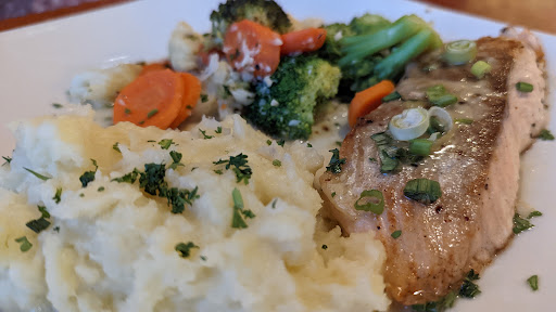 We went out to Red Rock at Fashion Place last night (Monday night around 6pm) with my family because my sister was visiting from out of state. What started out as excitement (I had only been one other time to the SLC location and loved it) ended with frustration. The waitress and service were fine, and my Alaskan fish and chips were FANTASTIC, just like I remembered. (I think the majority of us ordered the fish and chips because of how good they are.) However, my daughter got the spaghetti and meatballs from the kids menu because she loves pasta and meatballs, but after a bite or two, she wouldnt eat it anymore, and she is nowhere close to picky. I offered to trade plates with her (and she gladly ate my fish and chips), and after a bite of the spaghetti, I could see why she wouldnt eat it. It had a LOT of heat! I could only eat maybe 4-5 bites myself, and my daughter can actually handle heat better than I can. I dont think that a dish with that much kick fits a kids menu very well. Im willing to give the benefit of the doubt that *maybe* they have a more mild kids sauce and someone put a regular marinara on instead by mistake, but neither of us could eat it, so strike one. We might have sent it back if we hadnt been so distracted by the other strikes Im about to mention, but at this point, we just wanted to finish and get out of there. Strikes 2 and 3 came from the "Paint Nite" group that was stationed literally 10 feet from where we were sitting. Not long after our food came out though, we heard a LOUD voice start speaking over a microphone. It was from the Paint Nite instructor, and it didnt help that their group wasnt closed off, either. I could have literally walked right in. We could hardly hear our own table conversation over her, and not only was it loud, but we had to listen to her innuendos and language to boot. She made everyone recite something about "no b*tching and moaning" at the beginning, and then a minute later she was making jokes about lubricants and "thats what she said" and other things of that nature. (Did I mention this was said loudly over the microphone while we were having a FAMILY dinner and with my daughter there?) Yeah. We were not impressed, and neither were the tables around us. We all were more than a little peeved. Supposedly after several complaints we were told that the manager turned the microphone volume down, but either he didnt really do it or the woman (or someone) turned it up again because there really was no difference. I have no clue why that Paint Nite group was there (and believe me, as a photographer and painter myself, I appreciate the arts), but they should NOT have been there, or they should at least get a different teacher or keep the volume lower. Its not fair to paying customers that our dining experience was compromised by some stray extracurricular group that got to talk over our conversation with a microphone. So, yeah. 3 strikes for an unpleasant dinner, so you lose 3 stars on this rating. Not impressed, which is a shame because (most) of the food and the cream sodas were delicious. I most likely will not be coming back until the painting group is nixed though.