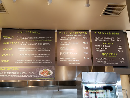 Zao has a simple menu of delicious food. Ordering is fast and prepared right in front of you, like Cafe Rio.
