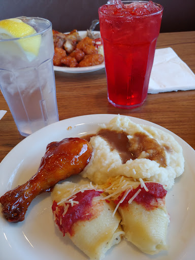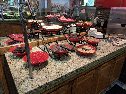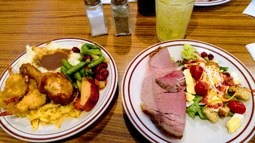 Weve always had great food and great service. There are many options on the salad bar, and many different types of meats and potatoes: Fried chicken, roasted chicken, ham, roast beef, fish, beef stroganoff, mashed potatoes, baked potatoes, French fries, au gratin potatoes, etc.