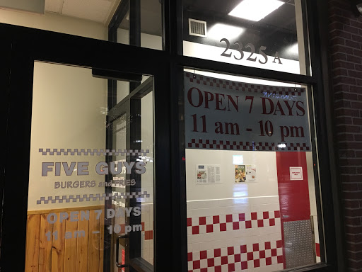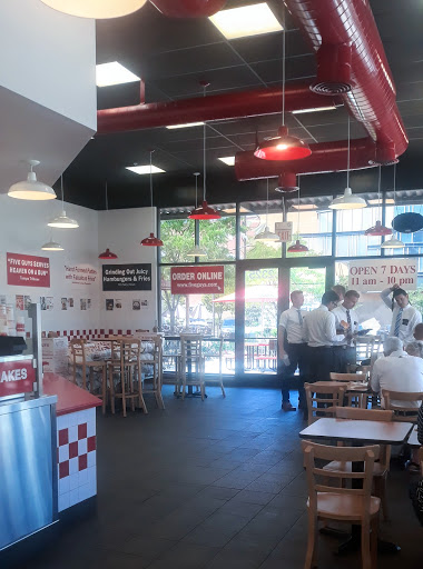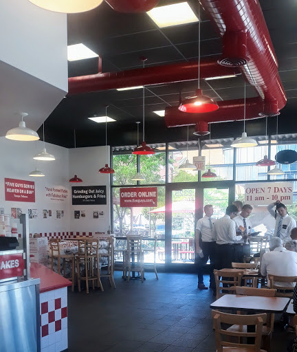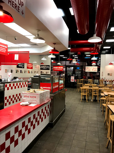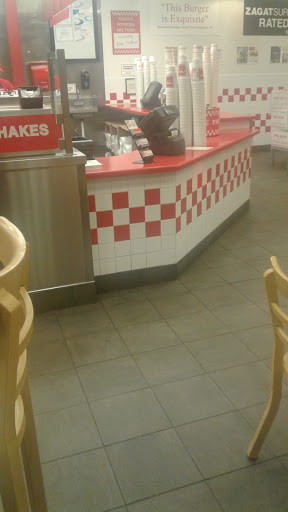 Five Guys is great. Parking can be a little tough to find at this location, especially during peak hours. Be prepared to spend quite a bit more than at your average burger joint. Its totally worth it, though.