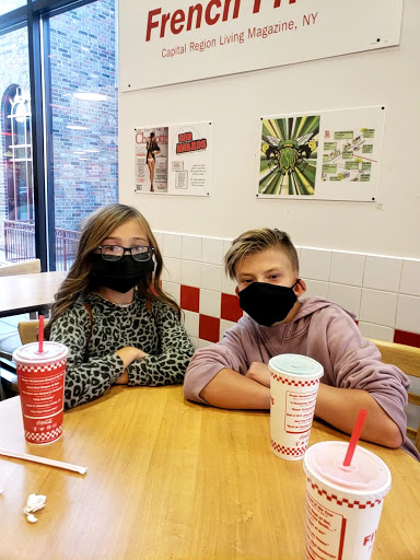 Food is always good. Exactly what you would expect from a Five Guys. Way more fries than you can eat (order the small for one person and a regular for two people). Each burger comes with two patties unless you specify "Little" for only one.