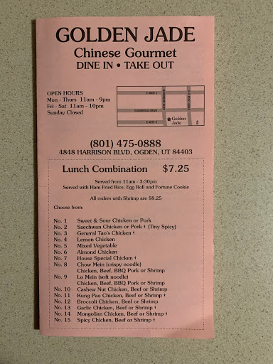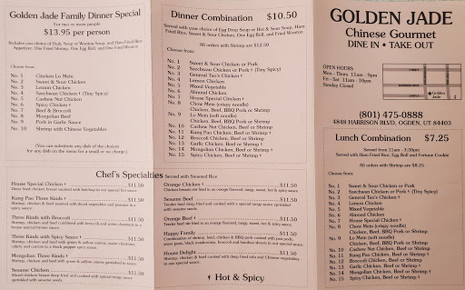 I love Chinese food and I have it all the time. I moved to Ogden UT a few years ago and have explored all the Chinese restaurants in the area. Golden Jade is by far the only restaurant that offer authentic tasting Chinese food. They offer dinner specials that include one main dish as well as soup, egg rolls, wutons, etc. Their food is absolutely delicious, and it is the favorite restaurant among the WSU students in the area. The restaurant itself looks like a dump, so take outs are much more common than eating in.