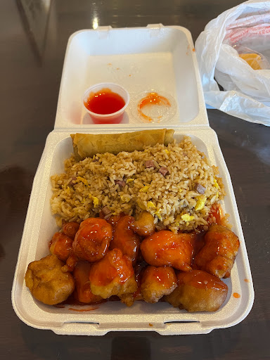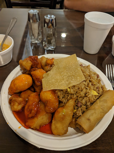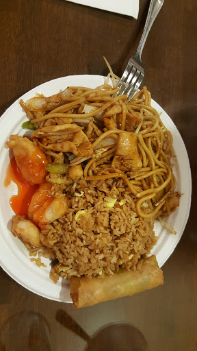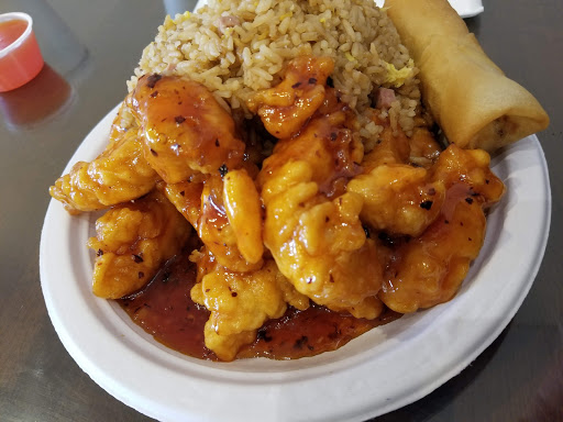 This is a slop house. The portions were huge. They put way too much food on one little paper plate. Kids cant help but get half of it on the floor. The fried rice had no vegetables and was brown from dirty grease. The egg rolls were oozing with grease. The chicken was okay. The lady just plops your food down with zero customer service and they are expensive...yuk Also, all dishes are disposable.