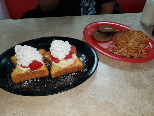 We had Bacon and eggs, hash browns and toast. Normally , most restaurants when you send something back, they take too long and dont get it right. Not here. I sent back the hashbrowns,. They fixed them up good, gave us trice as much l, and did it real fast. And the bacon, the BACON,... WOW. This was thick and so good. Honestly the best bacon Ive had in my life!!! And I have been around the world. The decor is like the name says. No frills, although they got a nice 50s style with Marilyn Monroe kinda going on. Great food! And lots of it.