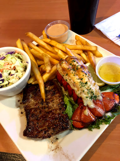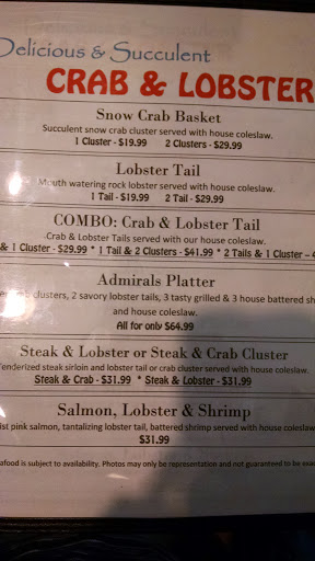 This place is not good. Had the lobster tails. They were cold, overcooked, and undersized. They were so horrible I had to complain. I did receive a 1% discount "F" for effort to make this right. If I wanted to chew on overpriced cold leather I could have started chomping on my hand bag. The tea was stale. The service was slow. The hint should have been the fact we were the only diners on a saturday night. The one positive is the battered shrimp and fries were ok. Dont waste your money here.