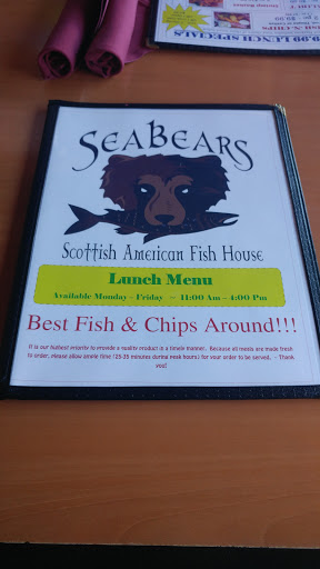 This was my daughters and my first time in Sea Bears restaurant. It has a Scottish theme, and an eclectic ambience. We had the crab ceviche for an appetizer, it was delicious and freshly made. For dinner we both got the fish and chips, I had the catfish, she had the tilapia. As an add-on we both got a battered jumbo oyster, which was to die for! Their batter is crispy and delicious, and everything was cooked hot and fresh to order. The service was immediate and our food was brought out so fast, I was actually surprised! We were there during an off-time, however: 3:45 PM. Im not sure why some negative reviews for we had a very enjoyable experience all around! Im definitely coming back. Its an upscale seafood restaurant disguised as a common fish and chip eatery! Thank you Sea Bears!