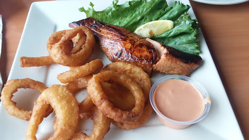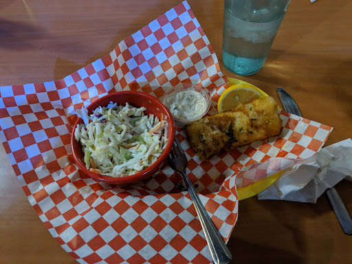 The halibut was cooked well. This place really smells fishy though and I was surprised that a fish house didnt serve fresher fish or wild caught. My hubby, who isnt into seafood, ordered a burger and fries that came out burnt and unmemorable. They dont serve any vegetables which was extremely dissapointing and only small green salads. Everything is deep fried. The staff was friendly and the atmosphere was nice and quiet- except for that fishy smell.