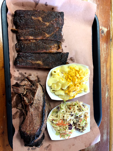Unfortunately, this place was pretty disappointing. Ive heard amazing things about this place for a couple years and finally made it here for lunch. We got brisket, pork, turkey and ribs and only the brisket was good. The turkey had a smoky flavor, but not much else going on. Ribs were peppery but very little meat on them. The pork had a weird texture to it... too mushy. We also got sides: coleslaw, beans, mac & cheese, and potato salad. The coleslaw was pretty good and different because it had a little spiciness going on, but was a bit dry and could have used more dressing. The mac & cheese cost a dollar more than "regular sides" but for no good reason; it was pretty bland cheesiness which was only slightly made up for with bacon crumbled on to but it was overall to oily. The beans tasted like chili powder and thats all. The potato salad was unique and spicy and had a strong vinegar/sour pickle flavor. The one positive about sides is that they were decent portions for the price. I just wish they tasted better. So overall we walked out happy with only 1 menu item: the brisket. Everything else was "just ok" to "not good". And worst of all, it was $46! For lunch! For 2 adults and a kid! Way too expensive for way disappointing food. Weve been taste testing all of the local BBQ joints in the valley, and this was the most expensive with the worst food. We wont be back.