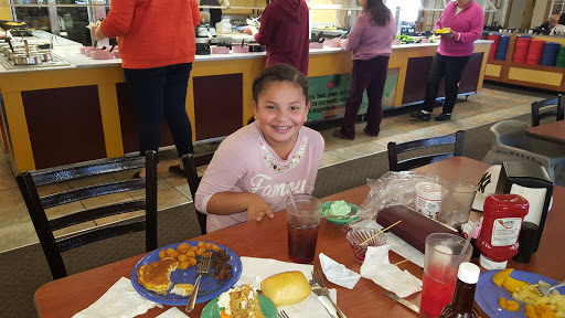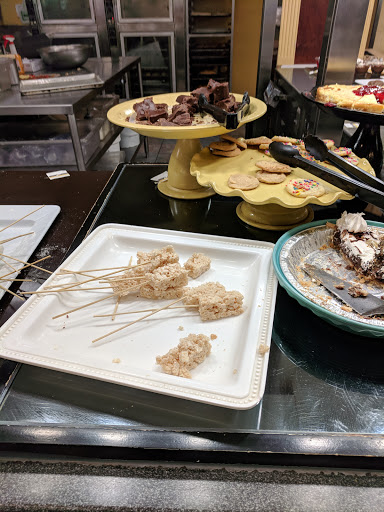 This location is very nice, it is kept clean and you can bring your family or come catch up with a friend. The food is really good. They have a bar for salad and soups, breakfast and lunch type items such as steak or french toast, and for desserts like cake, jello, or brownies. They have a good selection of every meal. The servers have been really great every time I have come, as well. The only reason why I am giving four stars is because today I overheard a "manager" whose name I believe is Andres say he didnt care if the water he was refilling to keep food warm spilled into neighboring trays because he "wasnt the one who was going to eat the food." Besides that, everyone else I have interacted with and the food I have tasted here deserve 5 stars.