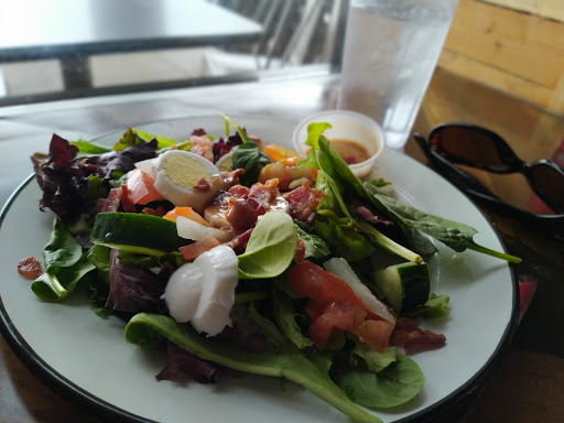 The strip mall this restaurant is in doesnt look promising, but the food and service were both good. The positives: The servings were generous, the food was warm, they had lots of sauces. My husband got the buffalo chicken wrap and enjoyed it (he did say the buffalo was really strong), and got the Cali Burger and it was refreshing and filling. Our water glasses stayed full and the waitress was very friendly and attentive. The negatives: When we came in, there wasnt a sign telling us to seat ourselves our a hostess. We stood awkwardly at the door for a few minutes before the waitress noticed us and told us we could pick a seat. The Cajun fries didnt really taste like Cajun fries - there was barely any seasoning on them. There was a dessert on the website that looked like a smores mason jar or something (it looked DIVINE) but it wasnt on the menu, which was disappointing.