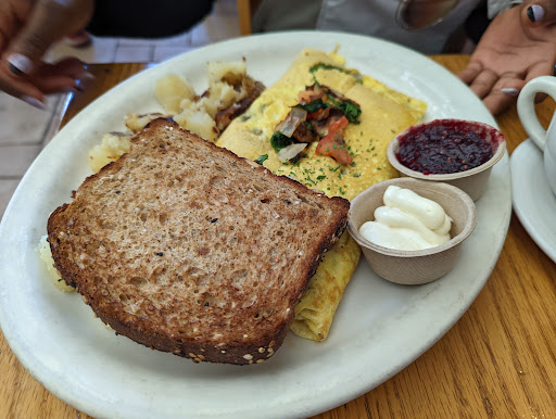 We got the wrong order so why 5 stars? Well read on and see how things worked out in the end. My wife and I were here on our 40th anniversary and it was real crowed so did not feel like complaining. Our waitress took our order but did not write any thing down. I have seen them do that and usually am impressed with the way they remember things. Anyway I ordered an omelet with added cheese bacon tomatoes and mushrooms. My wife ordered a turkey burger protein style with cheese and no bun. She ended up with a bun and no cheese and my omelet had spinach no bacon or cheese. So I ended up giving her only a dollar tip. Maybe thats weird but it was the principle of the thing. I took the time to write on the back of the receipt the reason for the tip and I explained it in a very nice way, even said sorry. When I get back home to California and look over my bank account I find that the restaurant had added 10.00 to my charge, What!! Called them up and explained to the manager what happened and he said he would look into it. Jeff the owner called me back to get the details so he could determine what went wrong. I must say he was very determined to find out how this happened. I could not find my receipt so was not sure how he would fix the problem but he did. I have no idea if it was on purpose or just a mistake but Jeff decided he would pay for our breakfast and gave us full credit. So yes they deserve 5 stars for tremendous customer support. Next time I am in Park City UT I will be happy to come in again. Should I have talked to the waitress at the time? Probably, but like I said they were extra busy since it was during the time of the Sundanese Film Festival so decided not to. Thanks Jeff that is the way to do business.