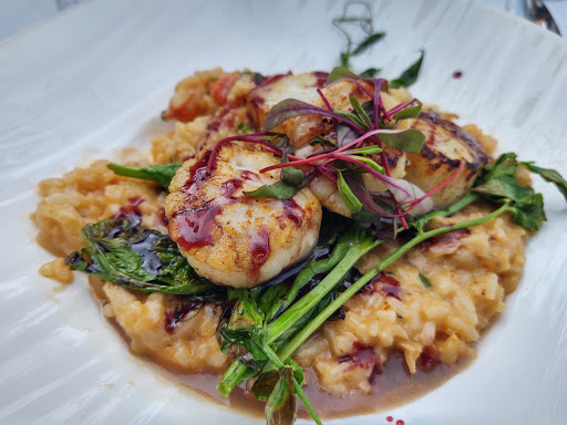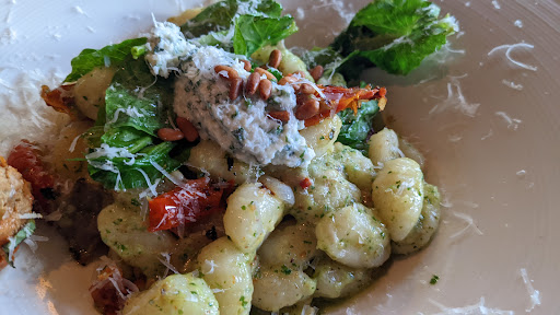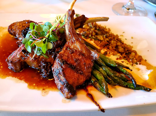 What a night! The restaurant is beautiful inside and out with a very inviting atmosphere. We had the flat bread with ricotta cheese and asparagus for an appetizer and the horseradish encrusted salmon for dinner with the grape and gorgonzola cheese salad with cheesecake and coffee for dessert. What delights! The best salmon I have ever had. Perfectly delicious meal to the last detail. Our server was Nick, and he was cheerful, funny and very knowledgeable about the menu and specials. This is my new favorite restaurant.