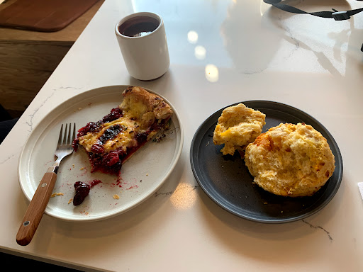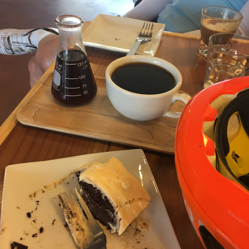 Came here two mornings in a row. A perfect pit stop off the rail trail. Two different baristas, both friendly. Although the young woman today was particularly helpful and accommodating. Between both days we had a southwestern quiche (warmed up), a savory cruffin (croissant/muffin hybrid) at room temp, a dark chocolate cruffin served warm, a fresh dark chocolate chip cookie with sea salt, a cafe mocha and a chocolate milk. Id recommend all depending on your mood or taste preference. On our second visit there were not any southwestern quiches in the case so Amber went and got one for us from the kitchen and there were no chocolate chip cookies, so she baked some for us. Pretty fabulous considering she was the only one working and could have easily steered us to the items already available. And there are samples available to try their different chocolate bars. If I lived here Id be here often.