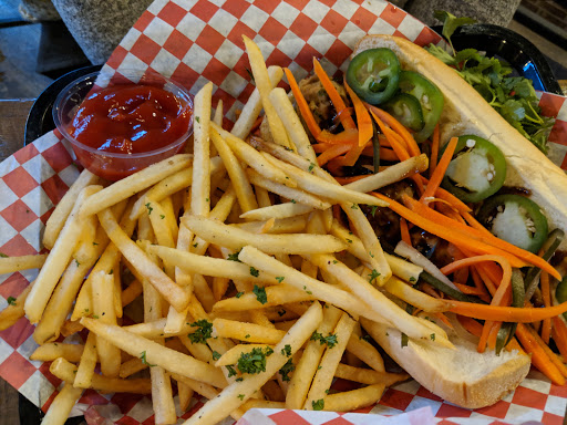 The menu looked fantastic but I wouldnt know because even though I had zero intentions of sitting at the bar and am over the legal age to drink I was refused entry because one of my friends was not yet 21. We explained nicely we just wanted to sit at a table and would not be ordering alcohol, the bouncer was immediately condescending and kept repeating "this is a BAR" in a very demeaning tone. I can right now think of at least 10 other ways he could have explained to us why we were not allowed to enter (which I still have no idea) and would not have thought of him or this establishment less for it. Instead he chose to use a rude tone and repeat himself, even though we clearly were not causing a scene or giving him a hard time. Ive worked in customer service and restaurants, and am from out of the area, so if there is a law I am unaware of it would have been nice to have it explained instead of curtly being dismissed. You also call yourselves a bar and GRILL... implying there is other seating for patrons under 21 to also enjoy the restaurant. I gave one star because the menu looked good.