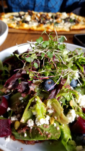 Good food. I had beet salad, he had their 5$ special burger of the day. The salad was excellent and the dressing as well.