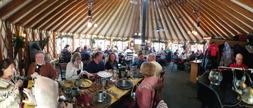 It has decent food and it is up on the mountain so you can eat/drink during a ski break. I havent been there for the dinner, so I dont know how that is, but for lunch it has decent sausages, short rib, etc. It isnt mind-blowing food or anything for lunch, but it is a yurt on a mountain.