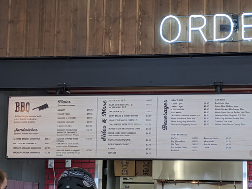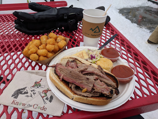 Great BBQ joint to hit up for lunch between slopes. I had the smoked sausage sandwich, and it was delicious. My friends and I also grabbed a few local beers from the register and some free water from some coolers on a table outside. Very expensive as you can expect, but it was a needed pick-me-up for my crew. Lots of tables are set outside, and at worst, you might have to wait a minute for one to free up since people are always coming and going. The warm greeting and smile from the lady at the register helped restore my confidence after getting my novice butt kicked by a green.