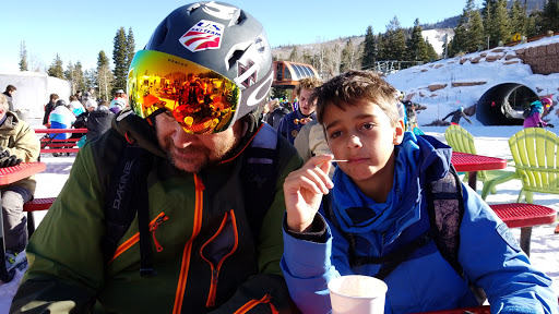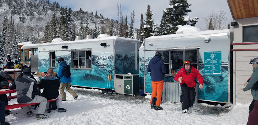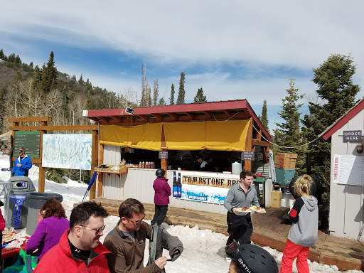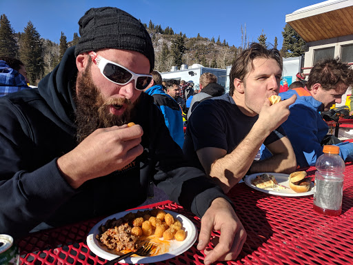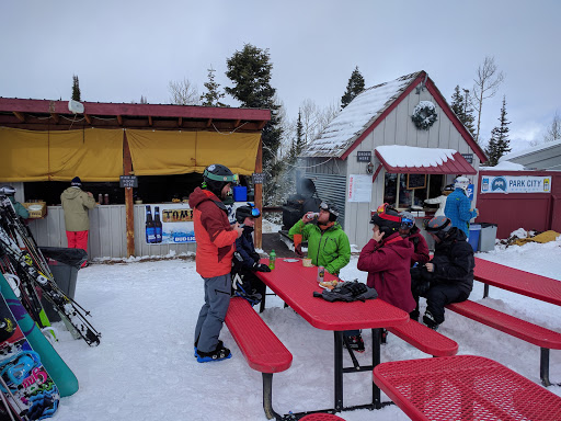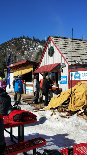 This place can get pretty crowded since it is at the base of the Tombstone lift, which is kind of a central hub on the Canyons. But on a good weather day, it is a great place to sit in the sun and have a burger and beer. Pro tip: do not get your food right there. Look to the yurt in the woods. They frequently have much shorter lines.
