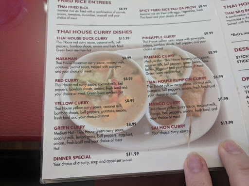 The curries are VERY good. I especially love the duck curry, the yellow curry (which is the same as duck with different meat), and for something a little spicier, the green curry. The pad Thai is also very good. And the sticky rice is soo good. Lunch special is a very good deal, 6.99 for a half portion of curry, rice, soup, and either a grilled chicken skewer or an egg roll. I highly recommend.
