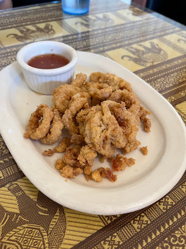 First time ever trying Thai food. It was delicious! Tried the dumplings, the chicken with peanut sate sauce, and the steamed buns for appetizers. The dumplings were to die for! I had the minty salmon and shrimp dish, and it was the best salmon Ive had in my life. My husband has the sweet and sour stir fry dish and I tasted it too. Best sweet and sour sauce Ive had! The service was wonderful, and the food came very quickly. It was 5 star restaurant dining with fast food timing. Incredible. :)