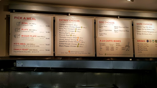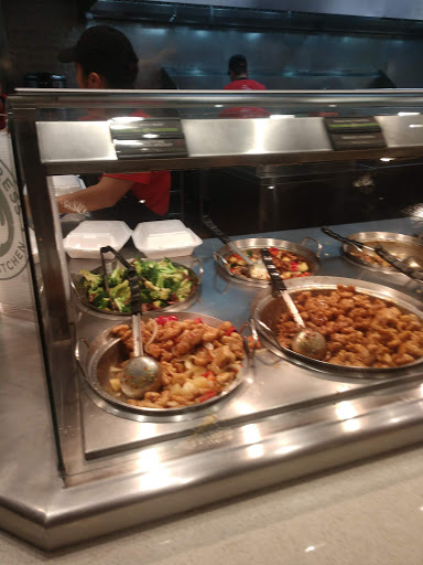 Service is so-so... Ive been there several times and while the line has been real long, theyve had people wiping down tables and sweeping nonchalantly while no one was there to man the cash register or serve food... I understand it can get busy, but the employees acted like they genuinely didnt care about any form of customer service. Once I did get my food, there was an obvious lack of proportion between the servings of rice/noodles and entrees... Ive been to other Pandas where the food is filling your plate, but this one I felt a little cheated. Not worth it.