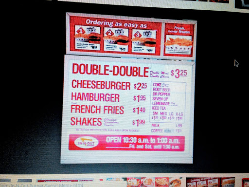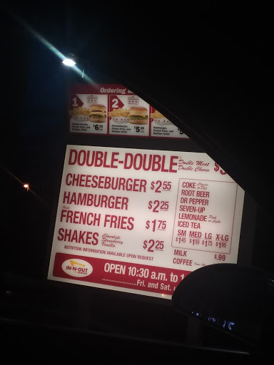 There employees are great. There employees always have a smile on there face,nice,polite. And there good dont even get me started on there good. Double Cheese burger so good so so so good,the frys they are the bomb baby. In-N-Out Burger it is out of this world. Keep making great food.