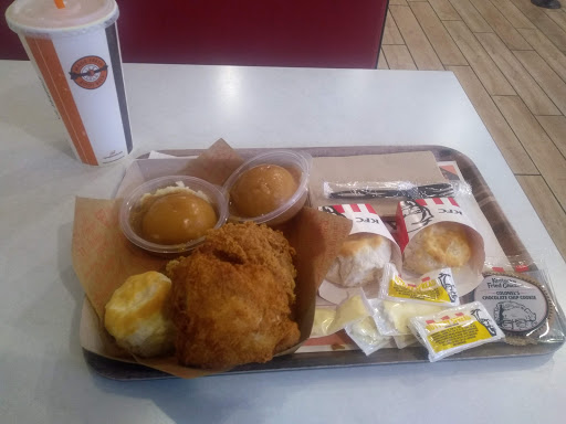 Drive thru experience was disappointing to say the least. Ordered three chicken tenders, and got what might have been the equivalent in a few smaller, harder pieces. Burger was cold, and the fries we waited forever for were soggy. The employee at the window forgot the drink we ordered, and it took a while of loud calling through the open window to get anyones attention. Even then, they gave us the wrong drinks, and the soda was mostly watery and flat! From what we could see from the window, the back of house was kind of grimey and unkempt. I would suspect this location as a whole is poorly mismanaged. Sad, because its the closest KFC to us, and Id rather go farther to get better, or just make my own all together!