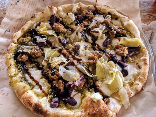 I liked it a lot but not perfect. The particular pizza I had (green stripe) I felt was a bit dry, the flavor from the pesto drizzle was not very identifiable. I think I will try other combinations to see if I like them better but I had to try the pesto first since I am a sucker for all things pesto! Staff is friendly, service quick and the pie is ready in a few minutes. Crust had the right amount of char to add flavor to the overall experience. Plenty of seating. Prices are good.