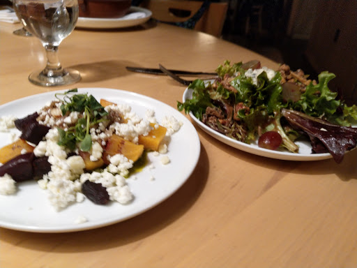 Very sad to report that our favorite restaurant failed to deliver last night. We arrived at the restaurant around 5 pm and there were only two other parties seated. It took that waiter 20 minutes to deliver water to the table and another 20 minutes to come back and get our order. Then we waited another half an hour for our food. i ordered the pork and when it came it was uncooked, (pink and raw in the middle)! We had no time to send it back because we were going to a play, so I just ate the polenta and salad, which was unattractively stacked on top of each other. What happened to the previous chef? Do I dare go back again? Nope!!!