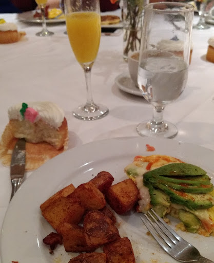 Horrible Easter brunch!!! We got there at two (thats the earliest they would seat us) Everthing was cold and dried out. We had to ask them to fill up some things that were empty, then not everything was replenished. Eggs Benedict was so hard you have to "saw it" with your knife. The desserts were a joke , a little tiny mini muffin size piece of cheese cake, and really dry crust pound cake,and some kind dried up mini muffins. Absolutely horrible experience! $30.00 a person. More like a $10.00 buffet. So disappointing. DONT GO THERE!