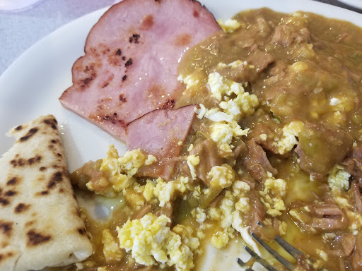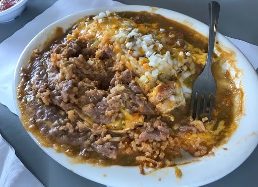 The smothered burrito with cheese is delicious and cheap, a thick homemade tortilla filled with refried beans and chili verde then smothered with cheese and more chili verde. One of my favorite places to take folks from out of town.