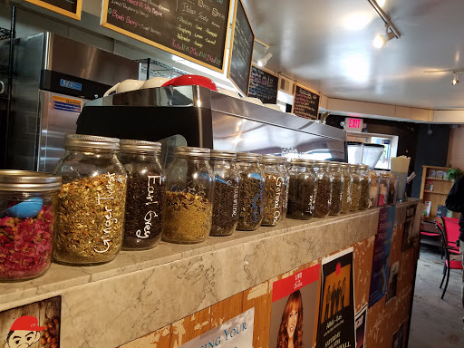 Im kind of kicking myself for taking so long to try this amazing place out! I cant comment on there coffee which is sad to say, although there coffee selection is amazing as well as their tea selection. There ice tea is great and the size of this place is awesome. Decent size and super chill environment to study or meet up with anyone. This place allows dogs because there was a man that had a tiny dog with him while working on his laptop and the dog was sitting in its bed next to him. It didnt make noise or disturb anyone so maybe that is one of the conditions. I ordered the yellow curry with tofu and it was delicious. They ask you if you want mild, medium, or hot for the spicing. I am not used to being asked that about curry so I said Medium because curry can normally rest on the "mild" ratio already. This was SPICY! There was hot flakes on the top I could have picked off or asked for the hot on the side. Id recommend you do that instead of just thinking itll be no biggie and mixing it all in. Otherwise you will ensue with the burning tongue!
