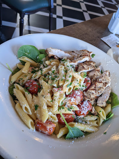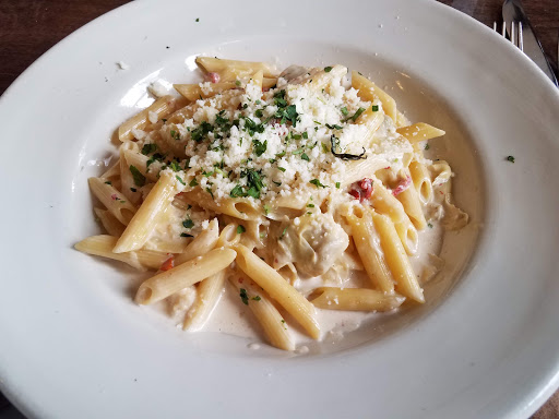 Came in on a saturday around 7:00 pm. Was quite busy but we were seated right away without a reservation. The atmosphere is more of an upscale. Noise level is medium. We ordered the spinach and artichoke appetizer. I ordered the lasagna. The appetizer was full of flavor but a little too salty for my taste. Quite a bit of dip for the amount of bread given. It worked great for the two of us and would probably be enough for four if extra bread was added. The lasagna was fantastic! It was covered with a rich zesty sauce, noodles were perfect. Im impressed with how flavorful the the food is, definitely not bland. For dessert we ordered bread pudding. It was ok but had too many walnuts for my taste. Service was friendly and refills were timely. As time went on and it became busier the service was somewhat slower. All in all I would definitely come again good food and a nice atmosphere!