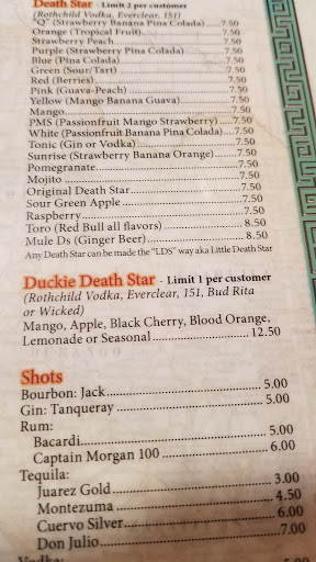 We LOVE this place!! However, tonight we were pretty disappointed with the deathstars. 3 out of 4 of us at our table ordered them & we didnt feel like they had any alcohol in them at all. Typically we get a "fun little buzz" & tonight nothing! They are pretty sweet, but usually you can taste a little alcohol, but unfortunately not tonight. They were more like drinking a big bowl of fruit punch... It was extremely busy & we wondered if the drinks "may" have somehow been skipped?!? The alcohol part that is -or- maybe we got "virgin" death stars. The whole reason to order a "death star" is for the buzz, so it was disappointing. Especially for $13 a piece. Food was excellent, and our waitress (whom we have had many times) was great! We will be back, and hopefully our next drinks will be much better. I should have talked to someone in management, but my husband wondered how we would prove it. Good point I guess...