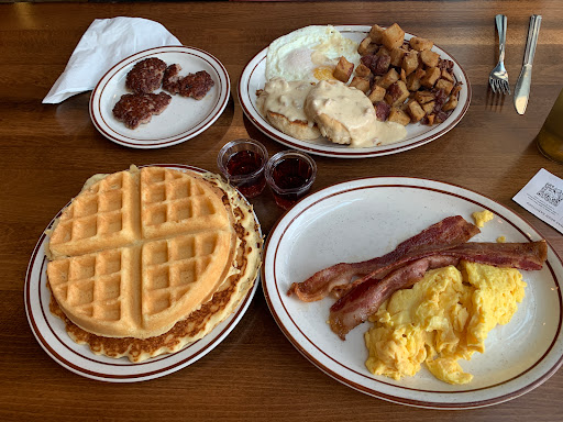 Felt a little let down. The food tastes good, but I feel like for the price:portion ratio the food deserved a little more time spent in preparation. The Kentucky Brown sounded delicious, with smoked turkey and bacon and avocado... And it tasted good. But the turkey was underneath the bechamel and it was soaked and lost. Aside from the meatiness of the bacon, the rest of the dish was just kind of a mush. Tasty, but it deserved better. The Crab Benedict was another tough one. It was served on a flapjack, which seems creative at first but while eating it feels more like an improvisation. Just dont feel like it worked all that well. The biggest disappointment was the shake. Got a dirty chai boozy shake. It wasnt even really cold, let alone a shake. There was no remaining icyness -- it was just a super thick drink. It felt like theyd left it out for a half hour before bringing it to the table. For a $9 shake I was pretty disappointed. The Mimosa was good. The place gets 3 stars because it tasted good, but for the cost thats probably still being a bit generous. Finally, felt let down by the service. She offered hot sauce, then didnt bring it til we were nearly done with our food. Couple shared a shake, it came out with one straw. She said shed bring a second straw, and it came out after theyd finished the shake. But the biggest disappointment was at the end when going over the check. My shake was listed twice on the receipt, so we asked her if we were charged twice. Her response? "I didnt charge you twice. If I had, I would have brought you two." Um, ok, snark much? Mistakes happen, not like we were accusing her of double charging us intentionally. Ive attached a pic of my plate (went with a group and ate family style, so dont take this as an example of their presentation).