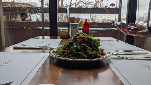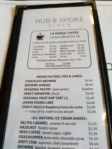 I chose 3 stars because I have strongly opposed opinions of my experience at Hub & Spoke.In short, the food is delicious and the service borders on terrible. The staff seem to be untrained and unsupervised by anyone with an understanding of how to run the front of the house. I went twice and had similar experiences each time. I went for lunch on a Saturday by myself and was seated after 5 minutes of waiting for at the unattended hostess booth. The restaurant was nearly empty, so its unclear why a hostess was absent. Once I was seated the waitress came and handed me the menu and quite literally immediately asked me if I knew what I wanted to eat before I had even opened the menu. I did know what I wanted (from looking at the menu online beforehand) and so I ordered the hub burger with fries as well as a side house salad. I asked what came on the burger and the waitress incorrectly told me it came with tomatoes and onion. The food arrived within a half hour and it was amazingly delicious. The side house salad was fresh and generous with blueberries. The burger was divine, and the fries were a perfect range of crispy to soft. The burger however did not have tomatoes and onions (it is not supposed to, as I learned later) and I waited for maybe 15 minutes for my server to come back so I could ask her about it. She never came to check on me once, until long after I had given in and finished my meal. She didnt even ask if the food was good, simply handed me the check and walked away. When she collected the check I mentioned it to her and she brushed it off as having remembered the burger wrong. The second time I went in around 8pm for some fries and a shake, this time with a friend. We were seated quickly and it was quite busy this time. Again our server asked us almost immediately what we would order, and we asked for more time. After placing our order and waiting a half hour the fries and salad and beer came. The milkshake never arrived and after another half hour our waiter did check on us and asked if the milkshake had come. After that it took another 15 minutes for the milkshake. It was supremely delicious (the grasshopper, non-alcoholic) and perfect with the fries.
