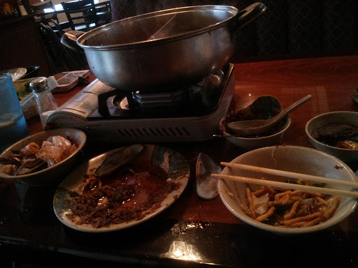 Totally love this place. For those that are new to hotpot, this is not some place you would take a hot date and experience some sort of European Fondue. When you eat hotpot at Hunan Garden, youre going to get messy and youre going to eat good. When you order hotpot the wait staff will ask if you want your broth half spicy. If those that are unsure how spicy it is, it is not spicy at all but very flavorful. Next they will bring out spices and sauces.This is to dip the cooked meat into it. There is a thick meaty sauce called BBQ sauce (its not the same bbq sauce you get at the grocery store) this is your main sauce. The others compliment the "bbq" sauce. There is a red sauce called, chili oil. This is to spice up your dipping sauce. The other sauce is soy sauce. Once you have the dipping sauces ready the plates of raw food will soon arrive. The standard selection(if you order buffet) is: spinach, glass noodles, squid, beef, chicken, fish balls, tofu skin, tofu, Napa cabbage, mussels, and shrimp. Now for those who want lamb, Ive always substituted to get lamb, which is by request. I recommend letting the wait staff know that if there is something that you dont like that is included in the All you can eat (AYCE), then let them know so it does not go to waste. There is also ala-carte if you decide not to order buffet. Just ask for the ala-carte menu. Again, this place is not to take your sweetheart on Valentines, but I always do :D Cheers.