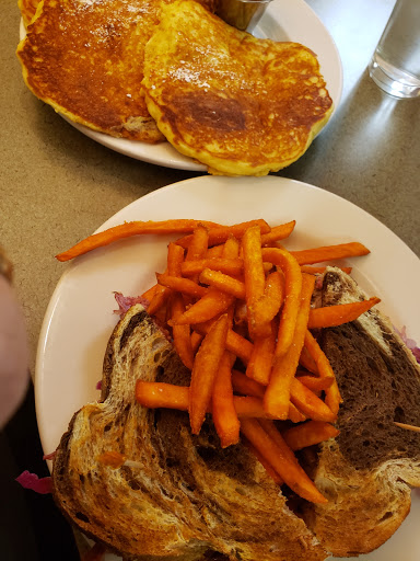 LOVE this place! Im not usually a pancake person, but their lemon pancakes are UNBELIEVABLE! Im not exaggerating when I say that these are the best pancakes Ive ever had because they really are. They are light and fluffy and have just the perfect amount of lemon flavor; not too heavy and not too light. They offer a buttermilk syrup that goes over the top which just accentuates their perfection. A must-try for any new-comers. I like several things about this restaurant. Its cozy, welcoming and has such a great vibe. Its also very clean and it is evident when you dine there that they have several regular patrons (all of whom Candice - a co-owner/server knows by name). I also love that they serve breakfast ALL DAY. Their breakfast choices are sure to please most everyone and the prices cant be beat; especially when you consider the quality ingredients. This is absolutely one of my favorite breakfast places. If youre looking for something fresh and delicious, look no further!