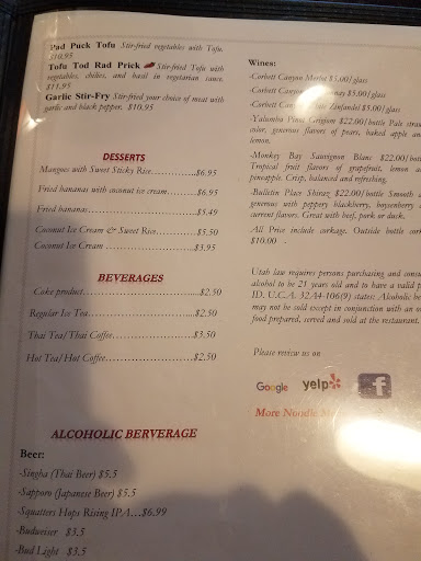 Omg its like so nice and pretty inside and the Green Curry amazing, so glad to find good Thai food in Utah. I had passed it so many times and never noticed it but this place totally shines with food and the staff was soooo nice like genuinely. She invited us to chill while they made the food and gave us water and there wasnt any pressure like some places they are like pissed you are there you know? She was so nice and not like fake nice! Totally chill atmosphere. From the outside you would think it was just like a hit or miss kind of place like "meh I guess we can eat there." Once you go in there and get their food you are thankful to the Thai gods and goddesses they are so close by , have decent prices and hook you up with that bomb ass curry and street noodles and you immediately slap yourself for not trying them out sooner. Why havent the hipsters invaded this place?