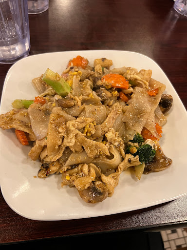 This place is awesome. Their service was great and everyone was really friendly. We had their drunken noodles, which were absolutely delicious, and their massaman Curry, which had potatoes and was also delicious. Their Thai iced tea was superb. The chicken satay was the best Ive ever had, hands down. Wouldnt hesitate to take anyone there. Business, friends, family.