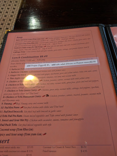 I lived in Thailand and this place is about as good as you can get in the states! Also they have khao soi, a northern Thai curry soup, which is amazingly delicious and Ive never found it in any other Thai restaurant. Staff is very pleasant and accommodating; Ive put in big takeout orders for parties and theyre wonderful.