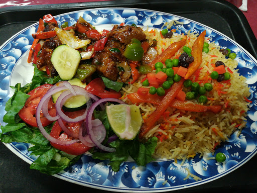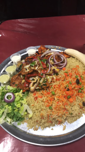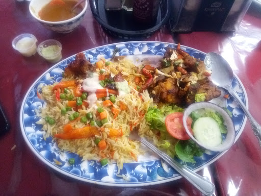Rice with Goat meat and beef steak is very good. Samosas are yummy too!