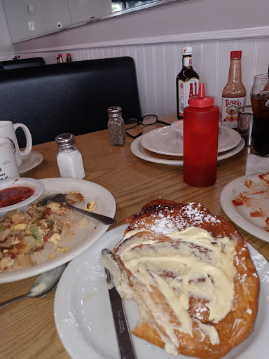 We went here on a busy Sunday and you seat yourself so we had to wait a few minutes before a table opened up but the delectable food was definitely worth it! The menu is pretty extensive but we decided on the western omelette and eggs benedict and were not disappointed. The service was prompt and we got our food pretty quickly even though it was busy. Id recommend ordering anything that has bacon in it and their home fries. We will definitely be back to try the trainwreck and their other specials!