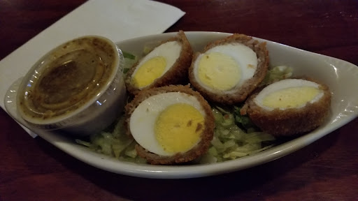 Feels the way a pub should. Exposed brick walls, vents, lots of wood, and Irish/Scottish pride. Food was among the best pub fare Ive had. Like pub grub with a gourmet twist. I particularly enjoyed the bangers and mash. My husband and I dont drink, but if we did I am sure the drinks would be great, too. Service was okay, not too attentive, which is a good thing at a place like this. Would definitely recommend.